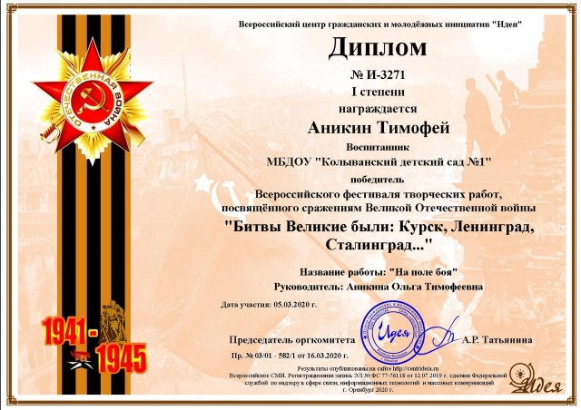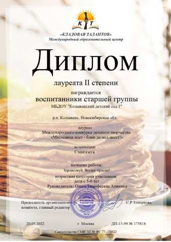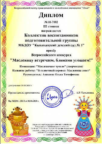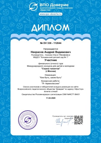 Воспитанник МБДОУ "Колыванский детский сад №1"